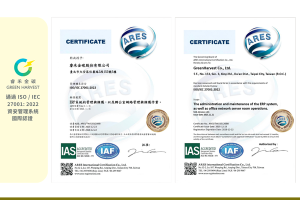 睿禾金碳通過 ISO 27001 :2022 國際認證